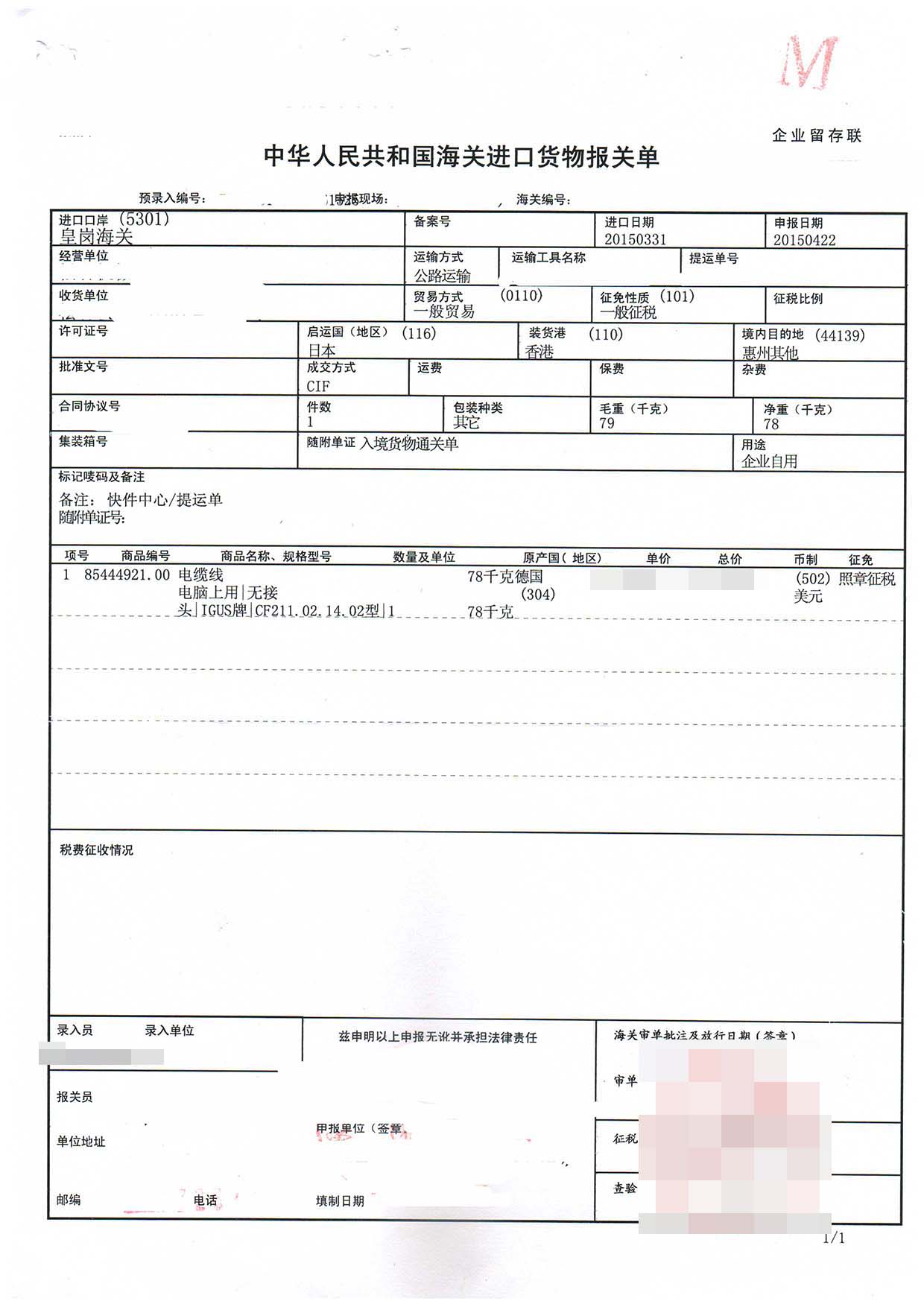 三、電纜線進口報關案例展示