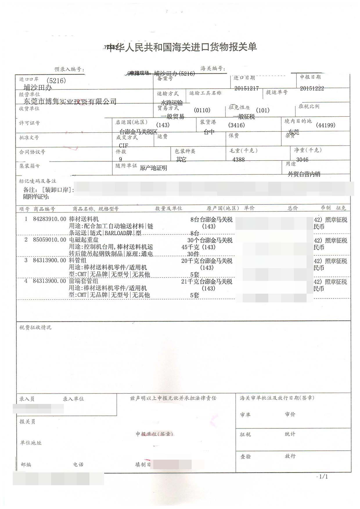 - 棒材送料機進口報關手續及案例【進口知識】